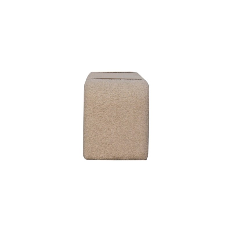 Derived from the French word for curled or ringed yarn or fabric. This handwoven upholstered furniture piece is made of 100% cotton and natural yarn. This bench showcases a contemporary curved design with a plush, cushioned top for comfortable seating. It features a distinctive belted strap design on both sides, making it an elegant addition to any hallway, reception area, or living room.