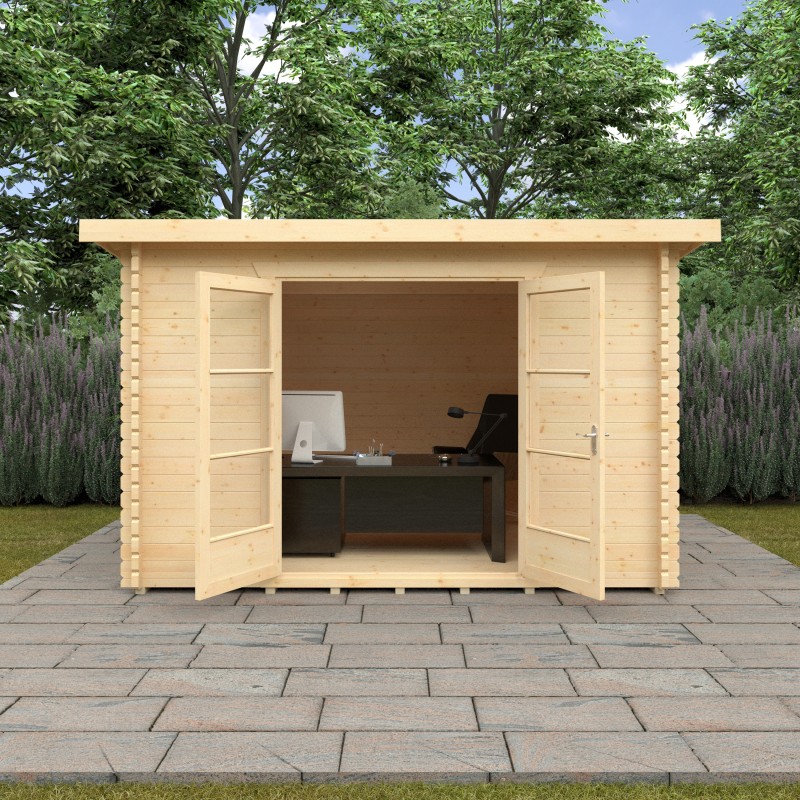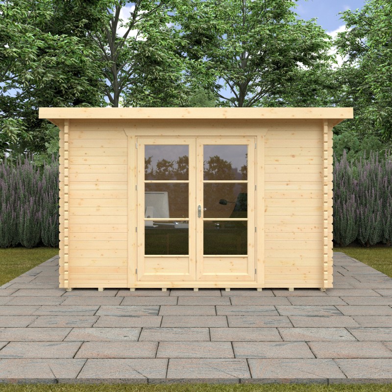 The Kingsley combines a unique and striking design with fantastic all round build quality. The Kingsley 44mm Pent Log Cabin creates an outdoor room, gym area, summerhouse or garden office – the opportunities are endless. The building is filled with superb and stylish features making it ideal for those yearning for an outside area with ample internal space in attractive and secure surroundings. You must ensure that this garden building is assembled strictly in accordance with the assembly instructions that are provided and is installed on a firm and level base constructed from a suitably durable material. The garden building should be treated shortly after assembly, both externally and internally, with a good quality wood preserver and treated with a water-resistant treatment. Treatment should be reapplied annually to prolong the life of your building. Images and photos of products are provided for illustrative purposes only. Please note that product colours can vary slightly due to the digital photography process and variations in individual user monitor settings.