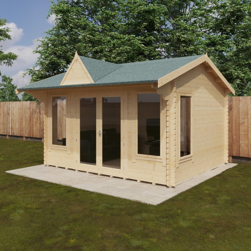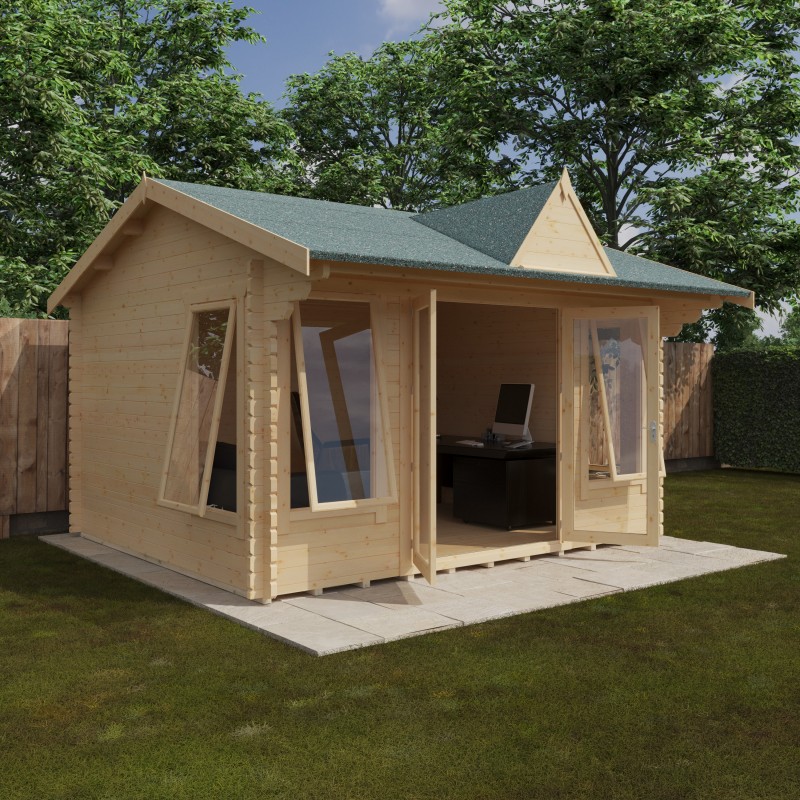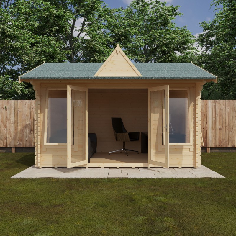 The Leyton Clocktower Log Cabin blends luxury, elegance, and spacious design with the renowned build quality. Built from sturdy 44mm interlocking logs, it’s designed for lasting durability, and comes with a pavilion style clock tower feature. Each size features draft-sealed double doors and joiner-made opening windows, keeping your cabin warm and secure all year round. For an enhanced finish, you can upgrade with heavy-duty coloured shingles and guttering. Like all 44mm Log Cabins, the Leyton is designed for easy assembly with an intuitive fit-log system. Four large windows flood the space with natural light, making it perfect as a stylish garden office or a relaxing outdoor retreat. However you choose to use it, the Leyton is a space you’ll love for years to come.