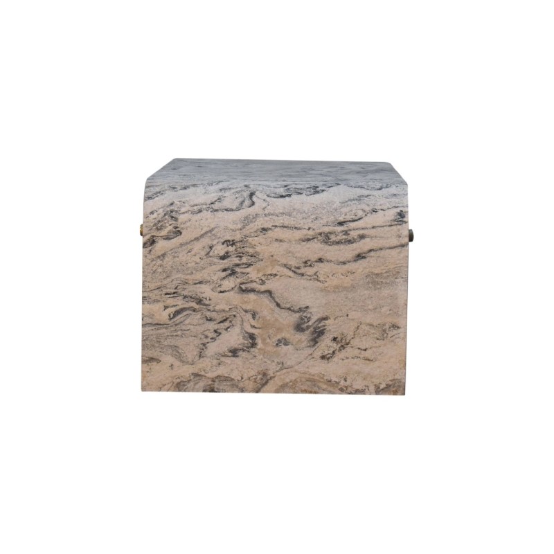Introducing the "Nouveau" Coffee Table, a symbol of refined luxury. Crafted from Solid Mango wood with an oak-ish finish inside the drawers, the body features a laminated marble effect stone veneer. Adorned with a shiny brass round knob, and 4 drawers, this coffee table exudes opulence and sophistication, making it a timeless addition to any upscale living room.